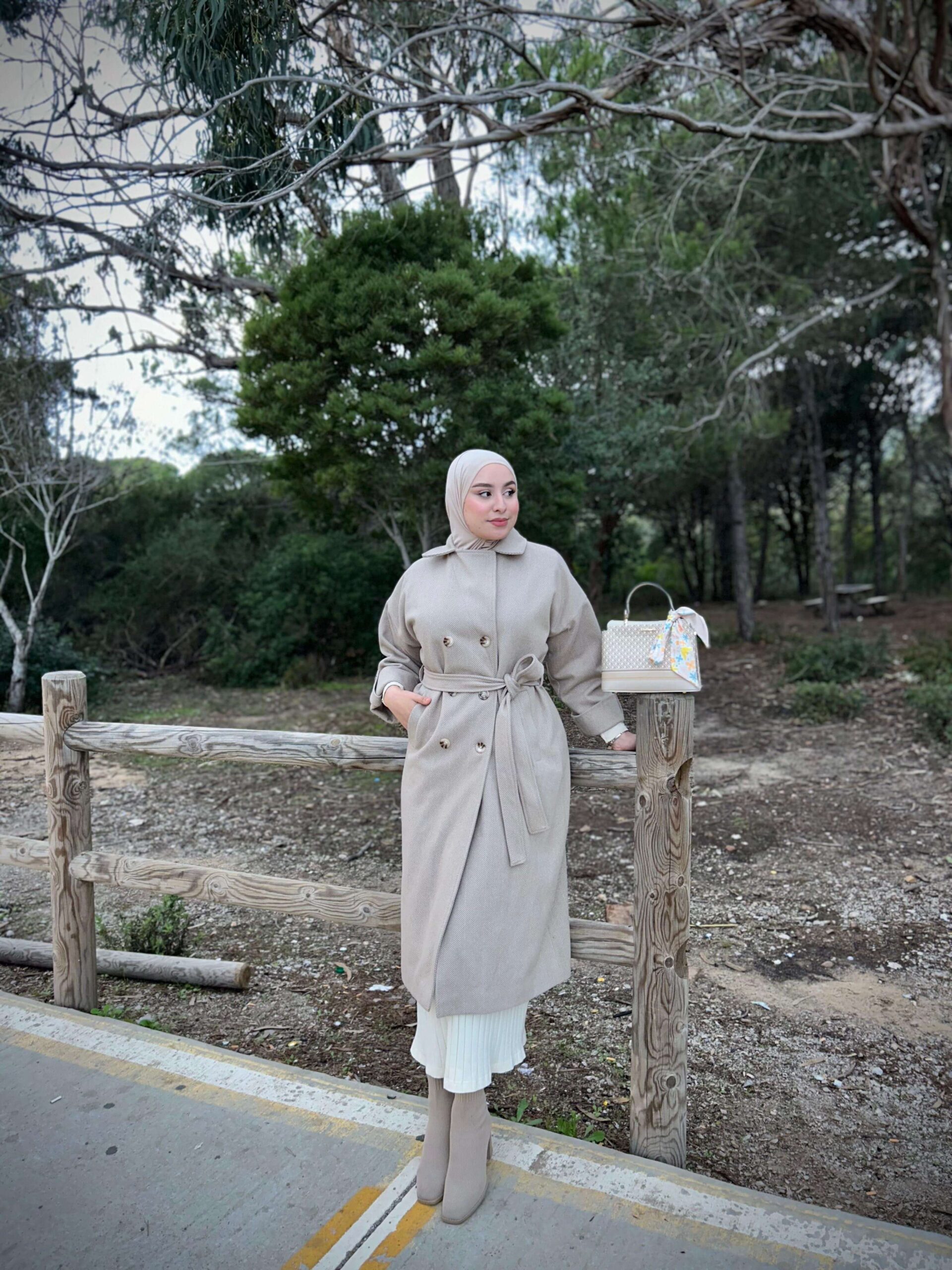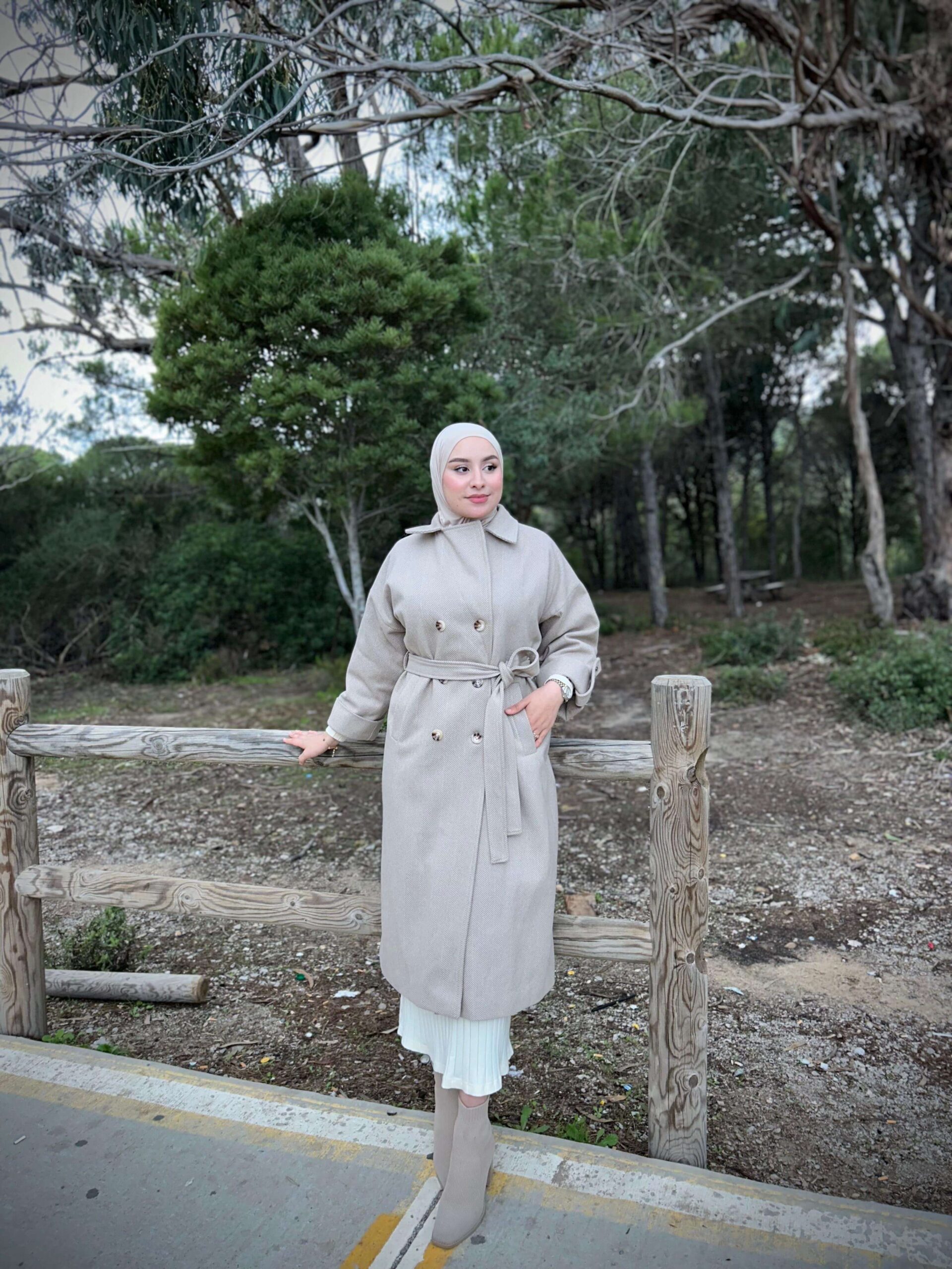 Manteau long en tissu doux et chaud, qui ne peluche pas, idéal pour l’hiver. Il présente un design moderne et mesure 120 cm de long, avec de jolis boutons élégants et harmonieux sur les manches et une patte qui peut être ouverte selon les préférences du client. Il est équipé d’une ceinture à la taille pour affiner la silhouette, offrant à la fois confort et chaleur avec une touche d’élégance.